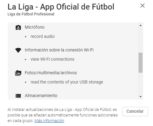 Las aplicaciones que instalamos en nuestros teléfonos móviles muchas veces cuentan con permisos que van más allá de lo que pensaríamos que es lógico o necesario para que se nos preste el servicio. El último ejemplo del que ha habido una cierta repercusión es la aplicación de la Liga Nacional de Fútbol Profesional, tema respecto del cual hemos hablado en reportajes como este en ABC denominado "Polémica en la app de La Liga: puede acceder al micrófono para evitar fraudes en las emisiones de los bares".
